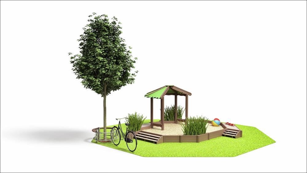 This lovely sand play and deck solution of the Flora series is a true paradise for the little ones! The stairs and decks around the sandpit can be used for different play purposes or even small stages!